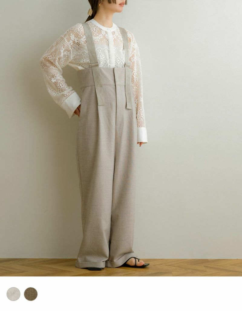 MIX調の表情のあるツイル素材がカジュアルになり過ぎず大人っぽく着こなせるサロペット。ワイドルーズなシルエットがこなれる1着です♪BASICなデザインでどんなトップスにも合わせやすい1着。フロントのホック+ファスナーで着脱しやすく、大きめのサイドポケットも嬉しいポイント◎