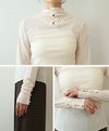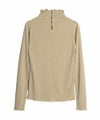 スラブ生地のナチュラルな雰囲気と、絶妙なニュアンスカラーが可愛いハイネックトップス。