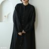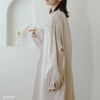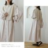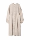 ぽわんとしたボリューム袖がノアルらしいロングワンピース。女性らしいふんわりシルエットに加え、フロントやショルダーにはピンタックデザインを施し、程よくエッジの効いた1着となっています。季節によってはゆったりとしたベストを重ねたレイヤードスタイルもおすすめです。またボタン付きの前開き仕様のため、ママさんも着やすいデザインも嬉しいポイントとなっています。