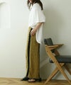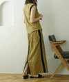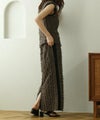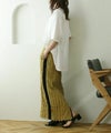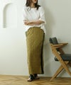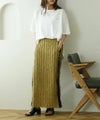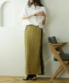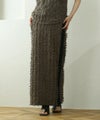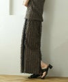 ジャガードの表情のある素材とフリンジが華やかなナロースカート。縦を強調するIラインシルエットでスマートな着こなしに♪サイドラインで脚長効果抜群です◎