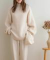 ワッフル編みハイネックプルオーバー