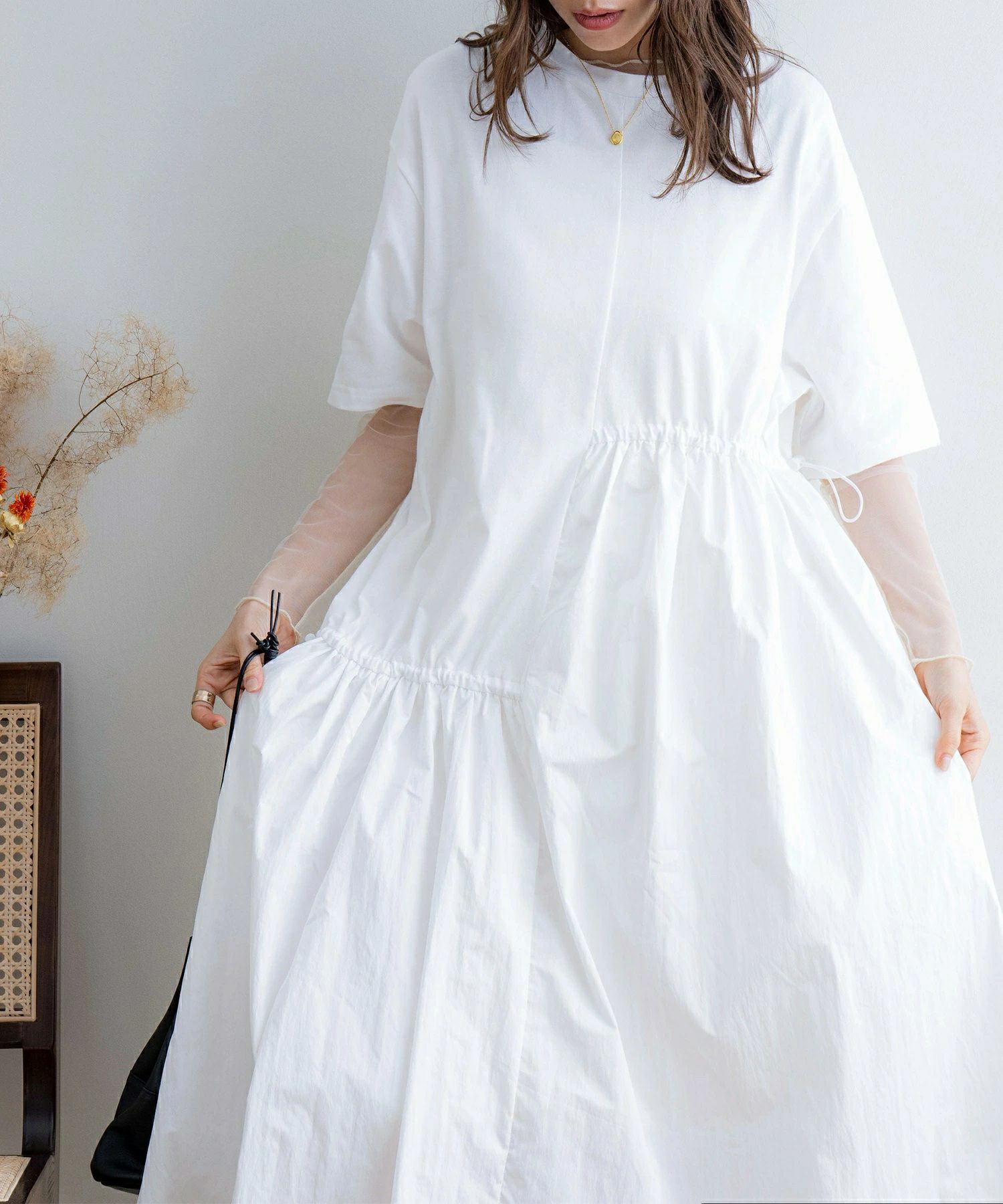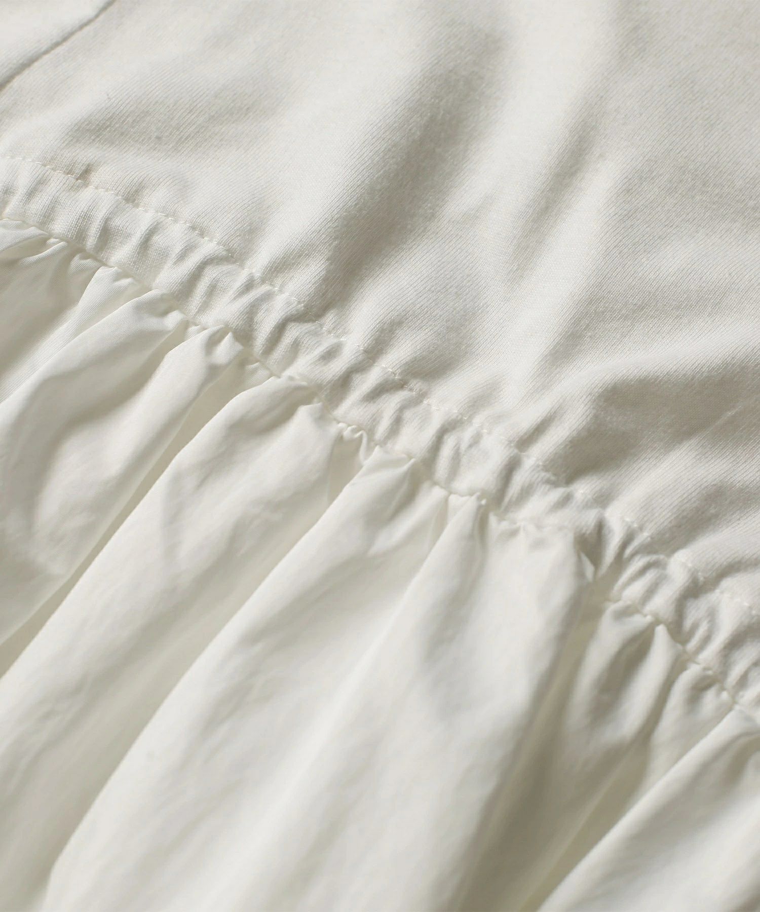 ・透け感あり(ホワイト) / 伸縮性あり(Tシャツ部分) / 裏地なし / ポケットなし