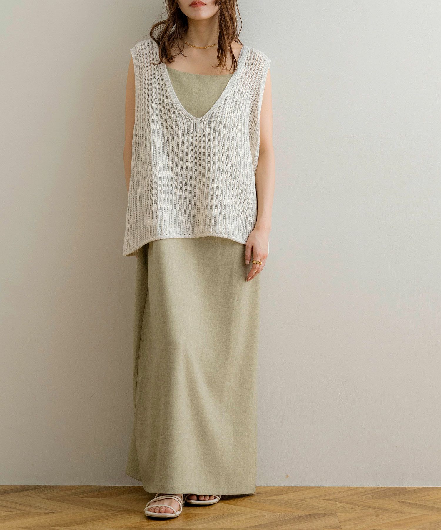 ノースリーブリップルワンピース