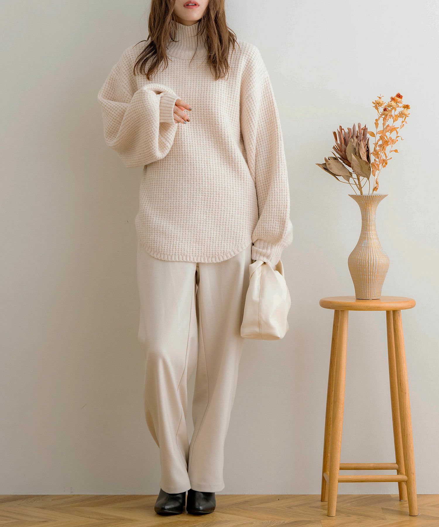 ダブルウエストタックワイドパンツ