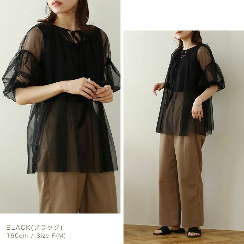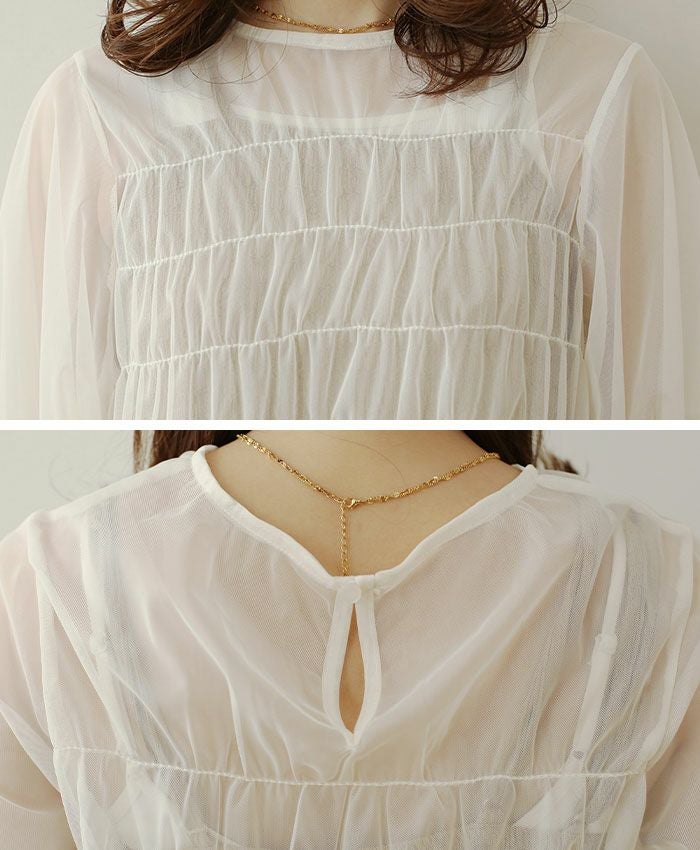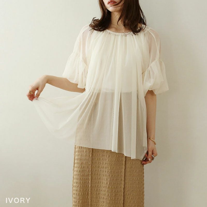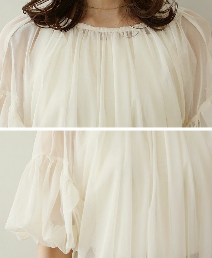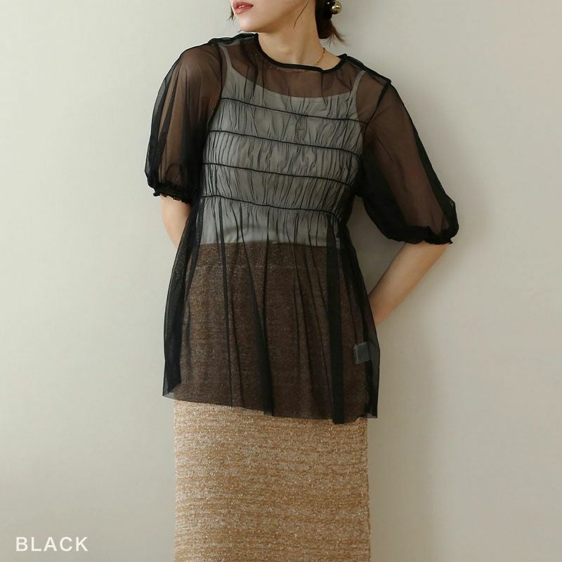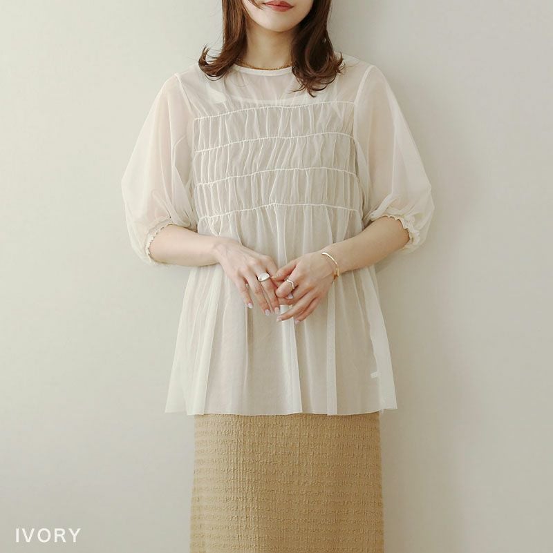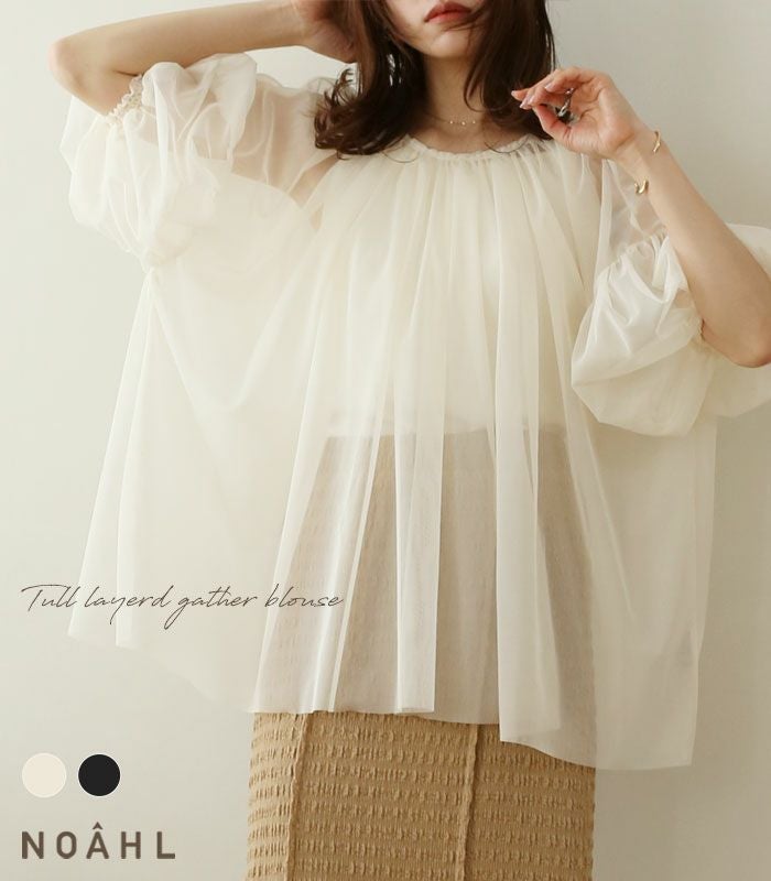 チュールレイヤードギャザーブラウス