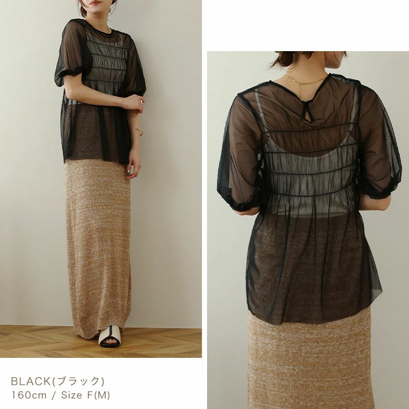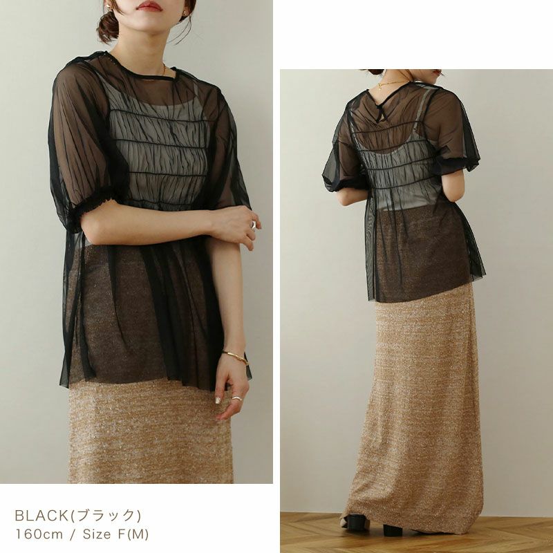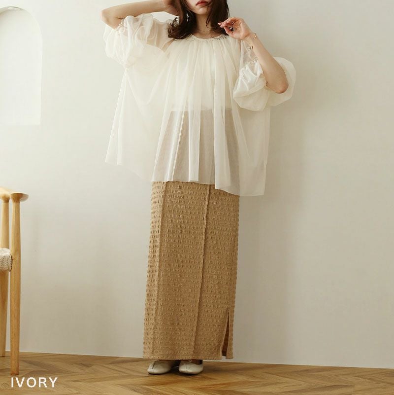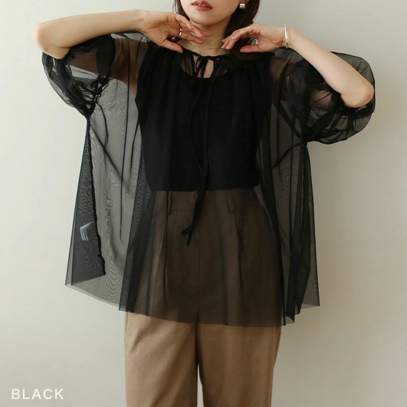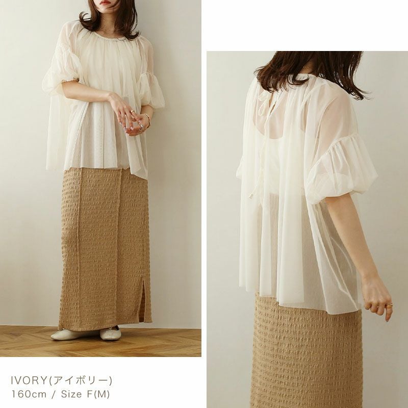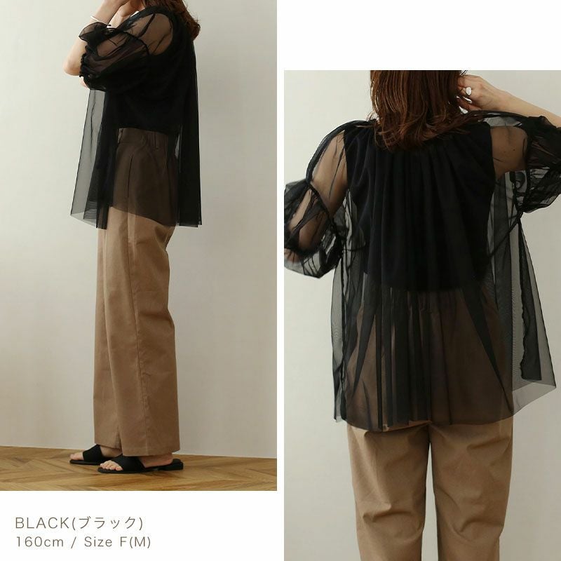 チュールレイヤードギャザーブラウス