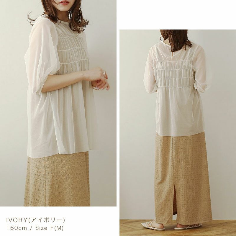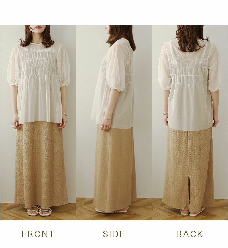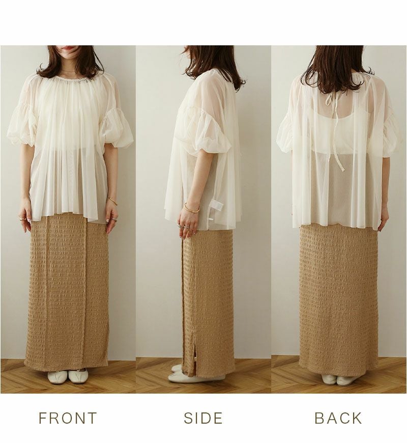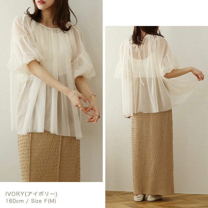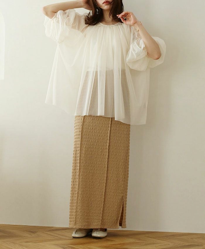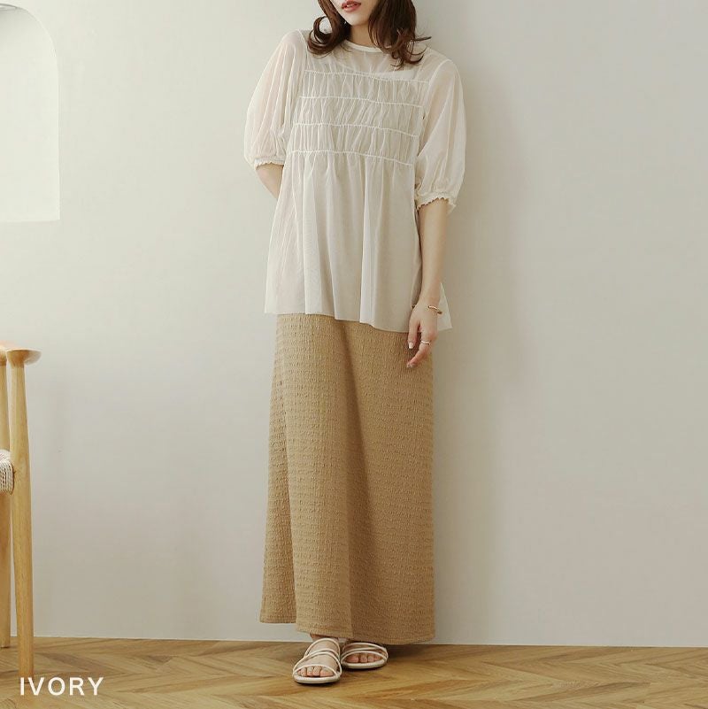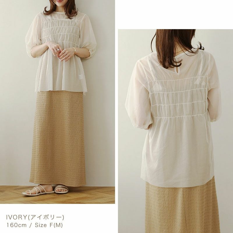 チュールシャーリングブラウス