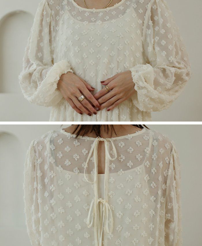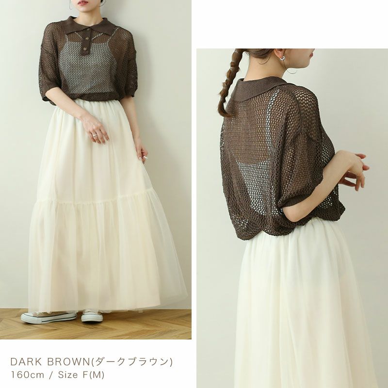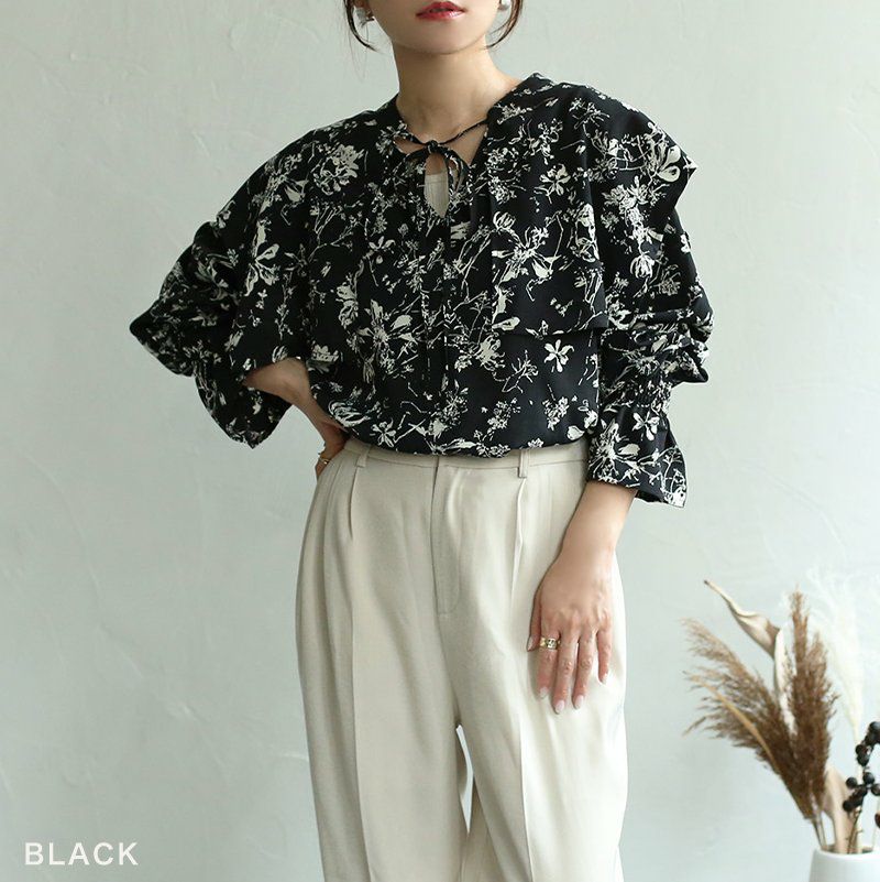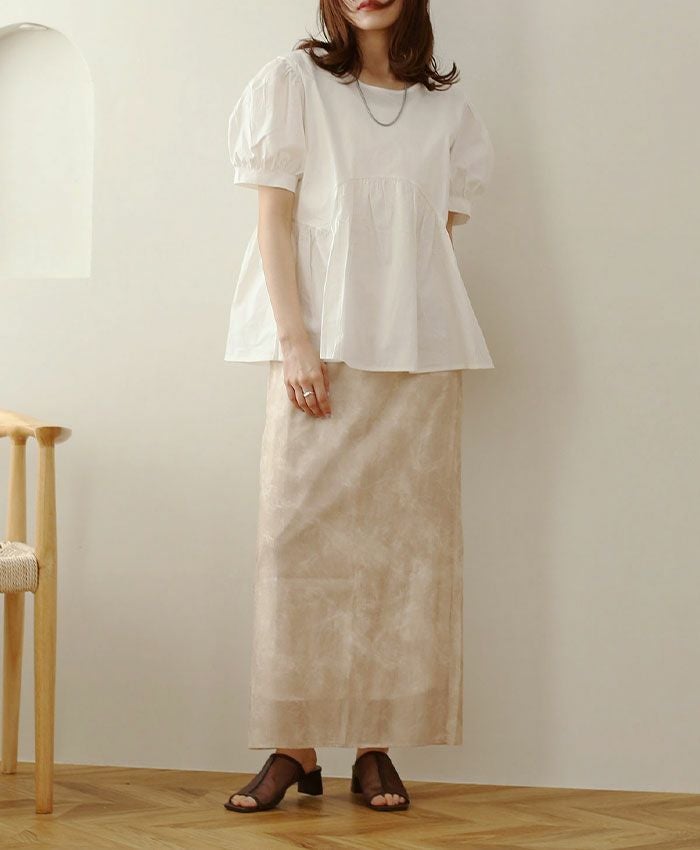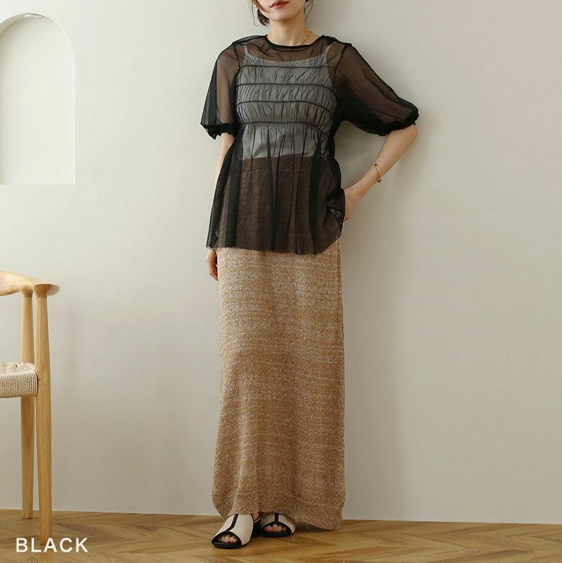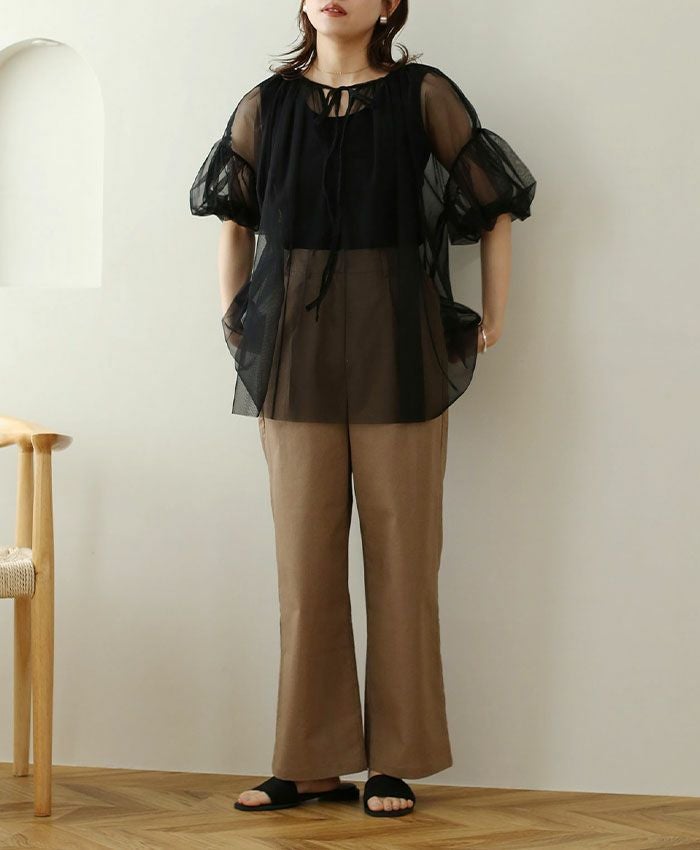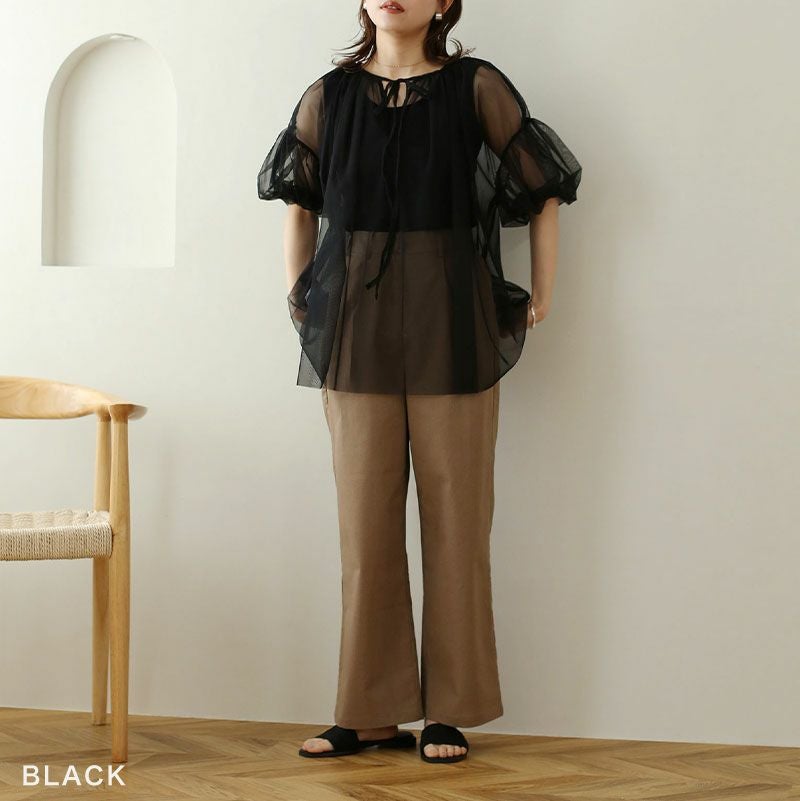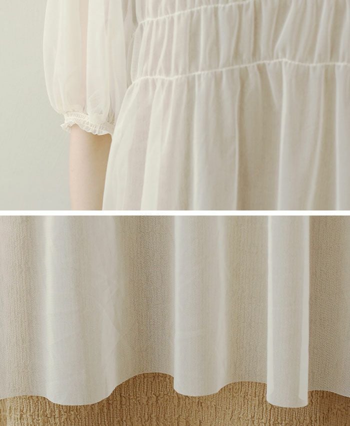 チュールシャーリングブラウス