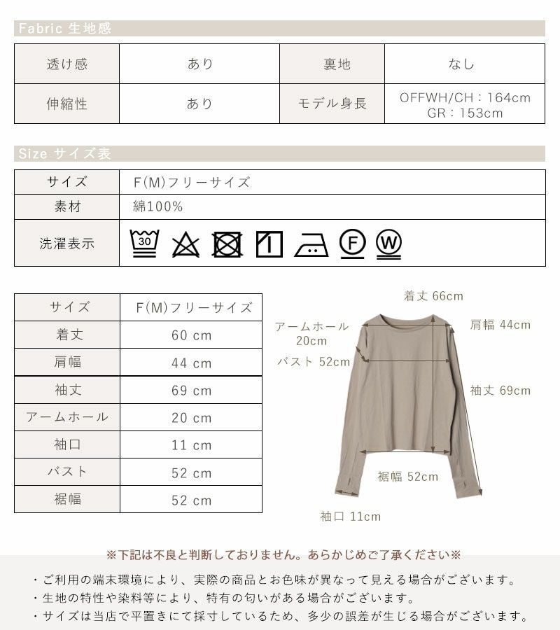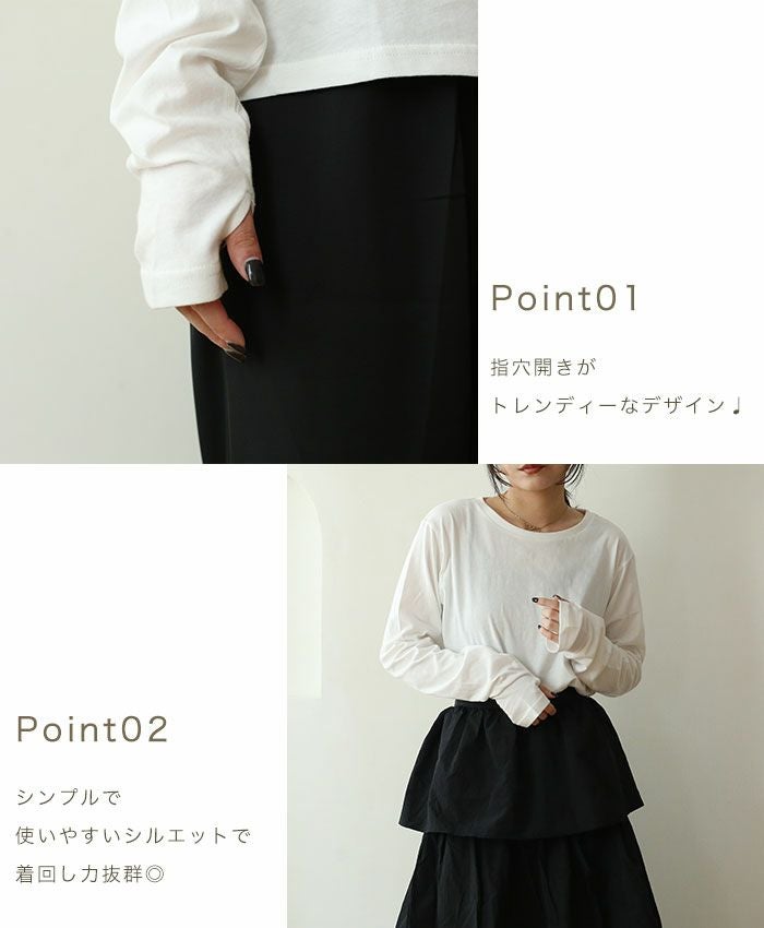 指穴開き長袖シンプルカットソー