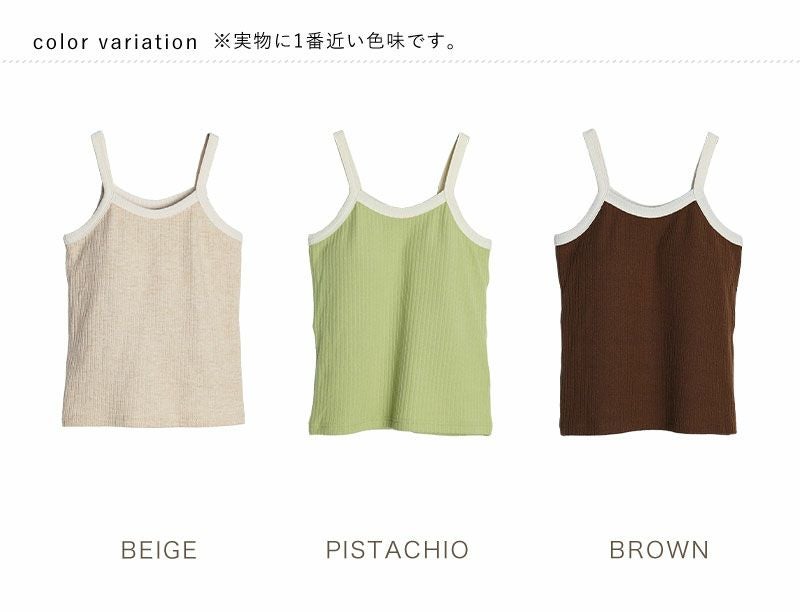 カップ付き配色キャミソール