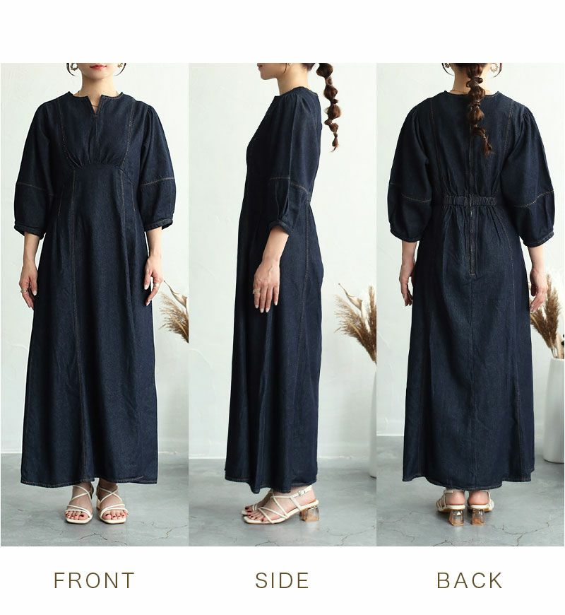 シャーリングボタンワンピース
