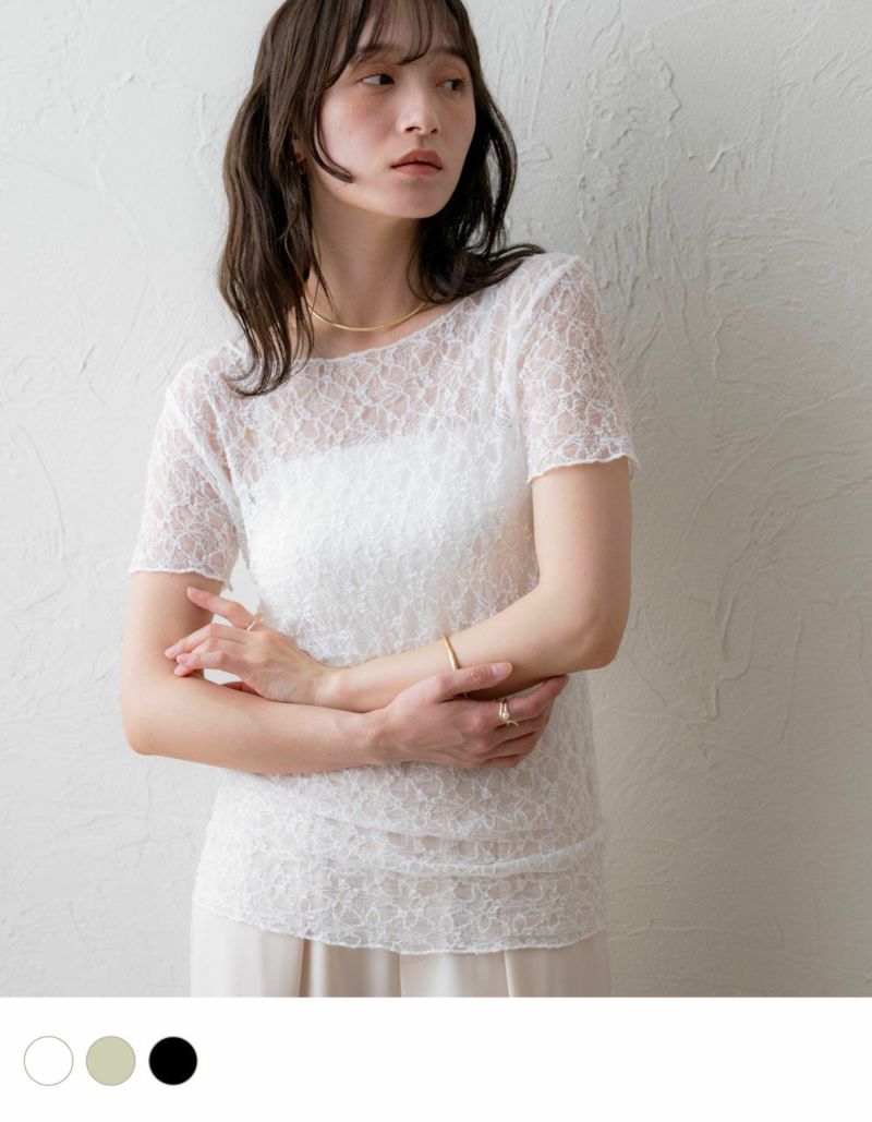 シアー感が可愛らしく、上品なレースが大人っぽいレーストップス。