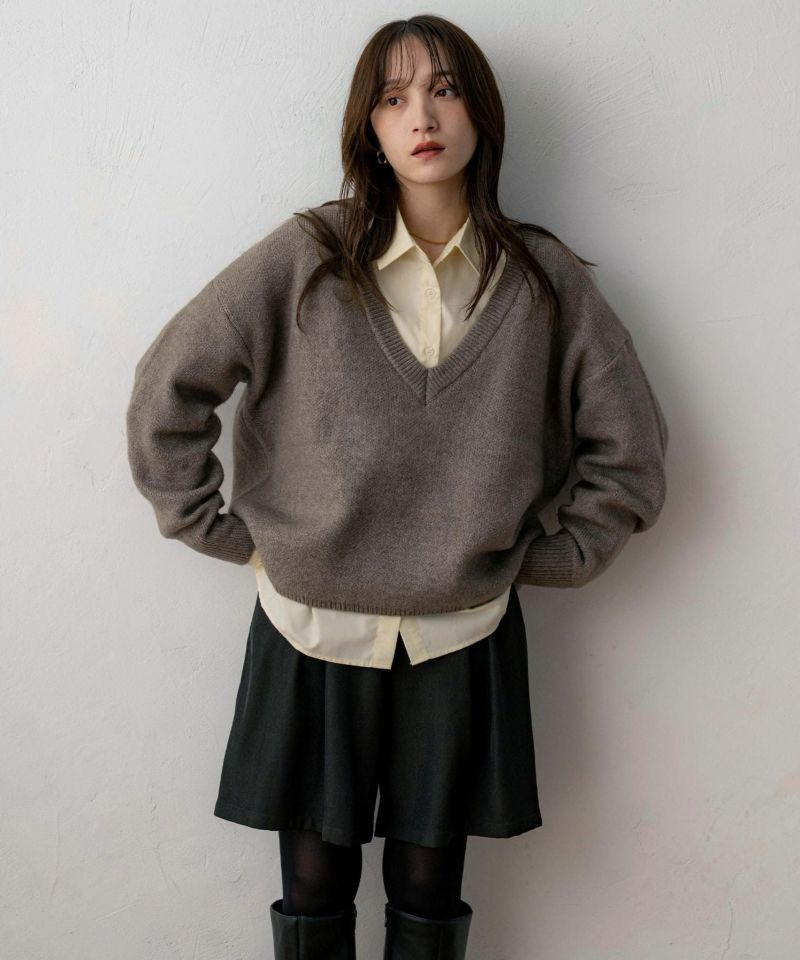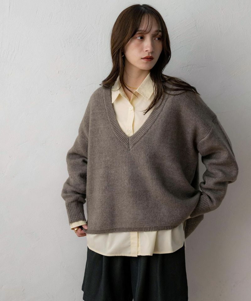 Vネックスリット入りニット