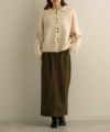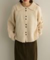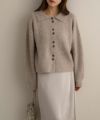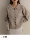 フロントボタンと襟デザインが可愛いニットカーディガン。