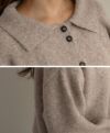 ボタンデザイン襟付きニットトップス