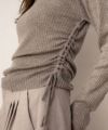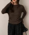 ドロストデザインのクシュっと感が可愛らしいシアーニットトップス。