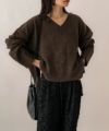 秋らしい温かみのあるカラーとVネックが大人ナチュラルなニットトップス。