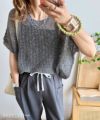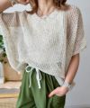 《大人気インフルエンサーmayoさんコラボアイテム》 涼しげなメッシュニットで夏らしい抜け感を演出する1着。 二の腕の1番気になる位置をカバーしてくれるドロップショルダーに ゆったり身幅で、体のラインを拾わないシルエットが◎ シャリ感のあるMIXサマーニットがナチュラルで合わせやすく ラフなのにどこか大人っぽさのあるトレンドライクなサマーニットトップスです♪