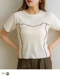なで肩なので、肩の部分は落ちた感じに見えますが、全体的にゆったりしたデザインで、夏場の汗をかく季節には締め付けがなく、サラッと着られそうです。 -