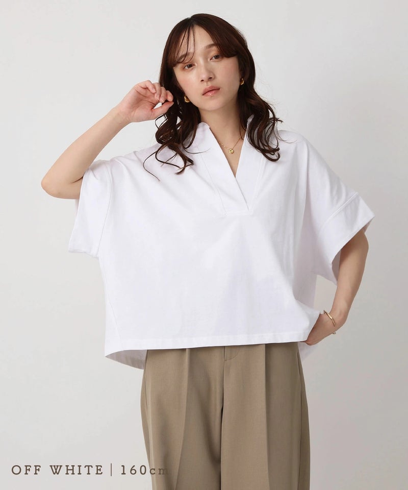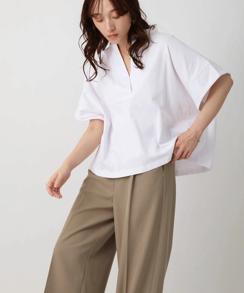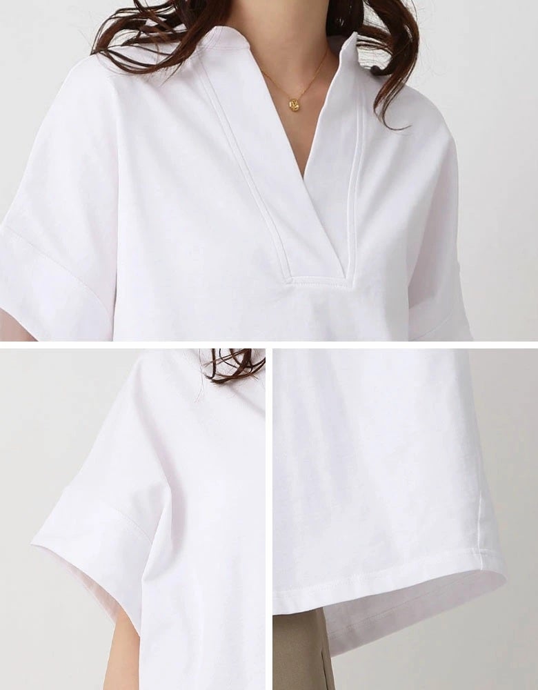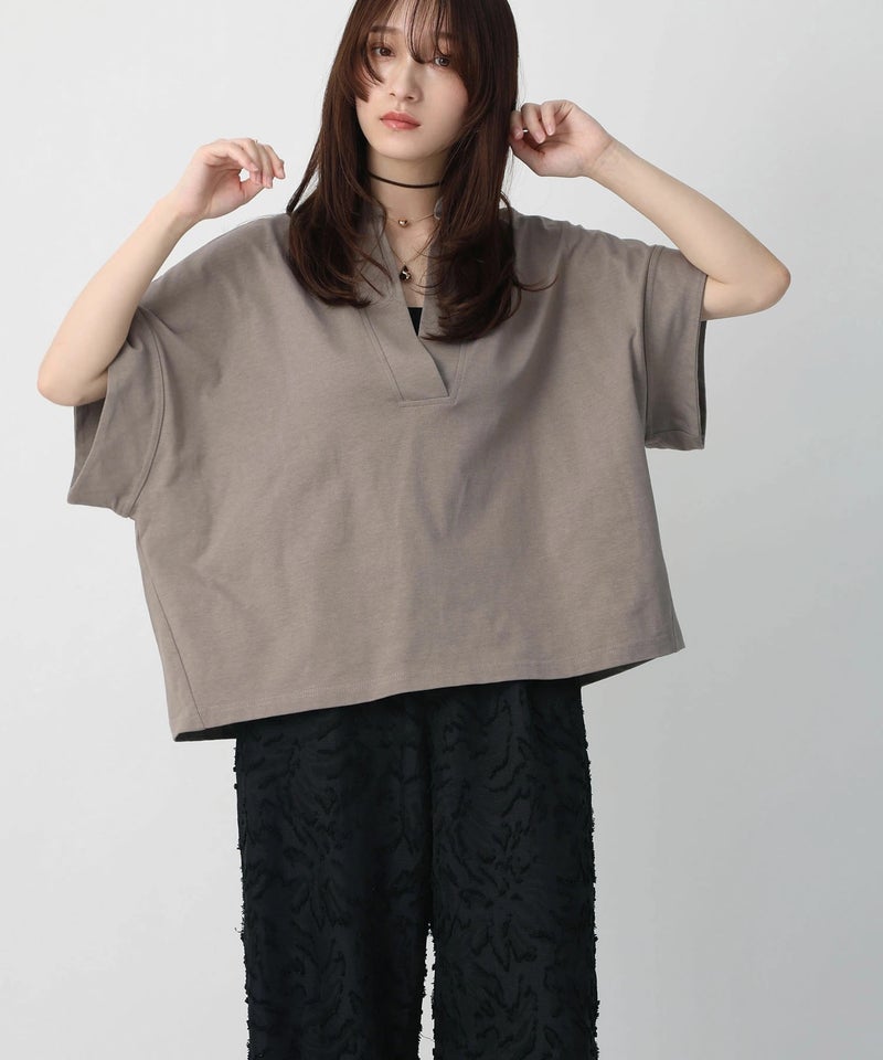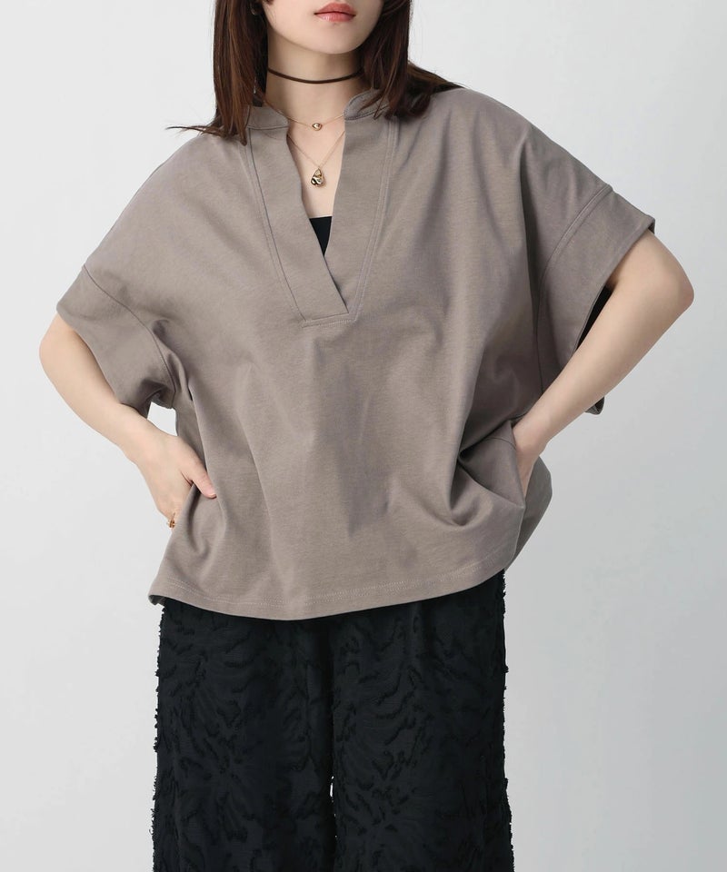スキッパーネックデザインTシャツ