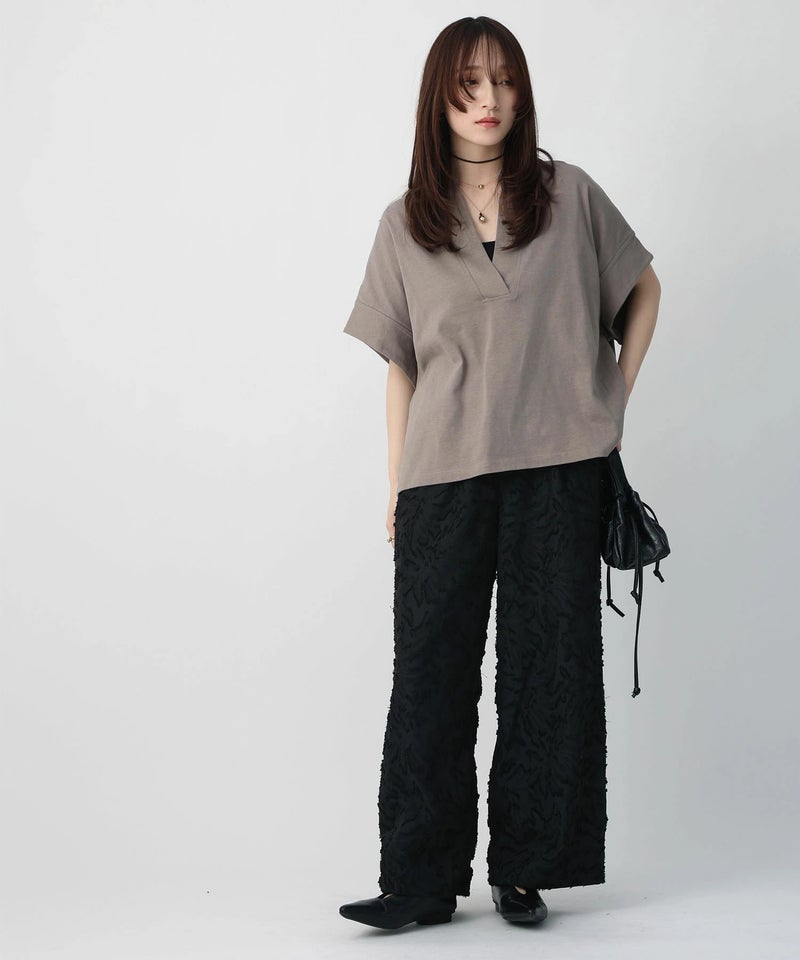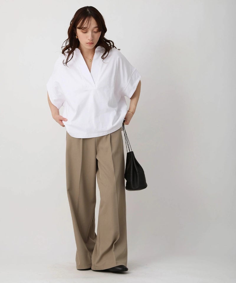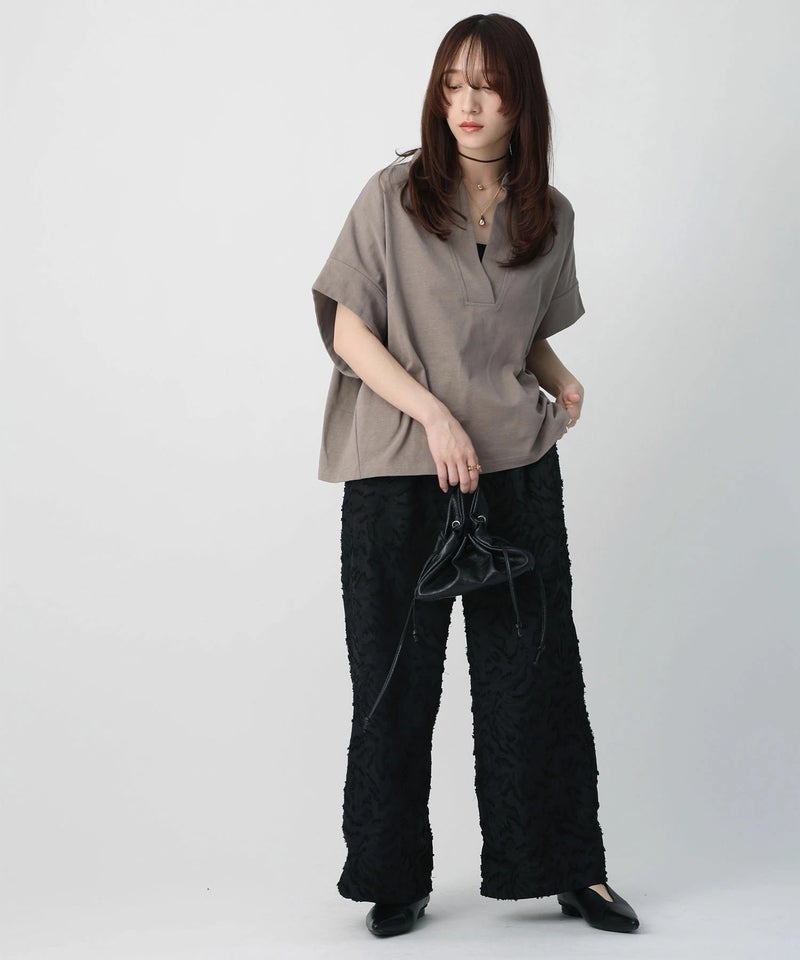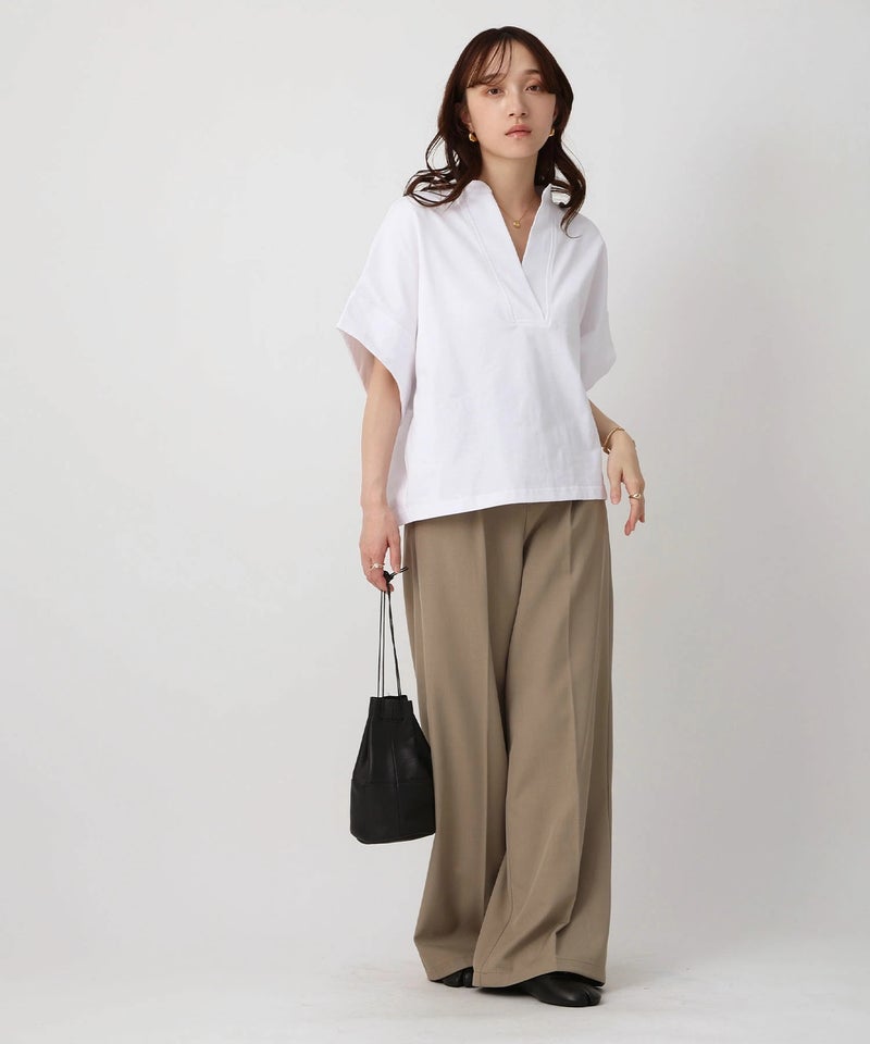 スキッパーネックデザインTシャツ