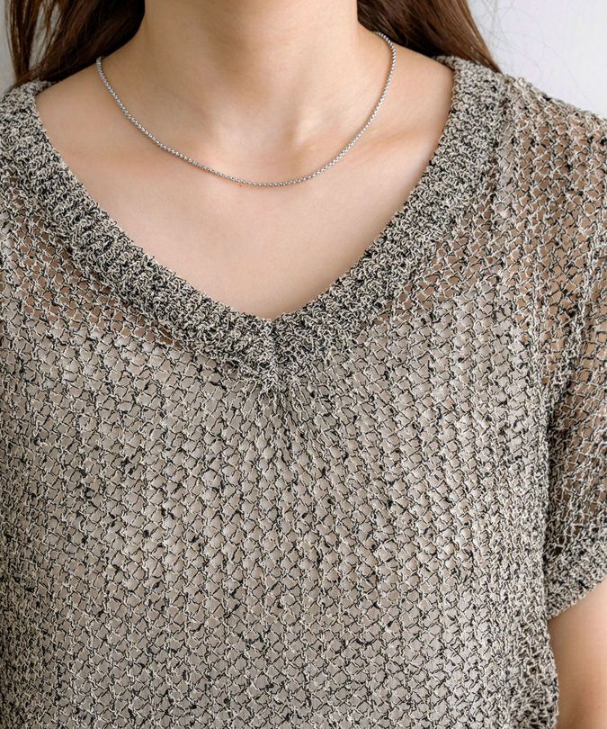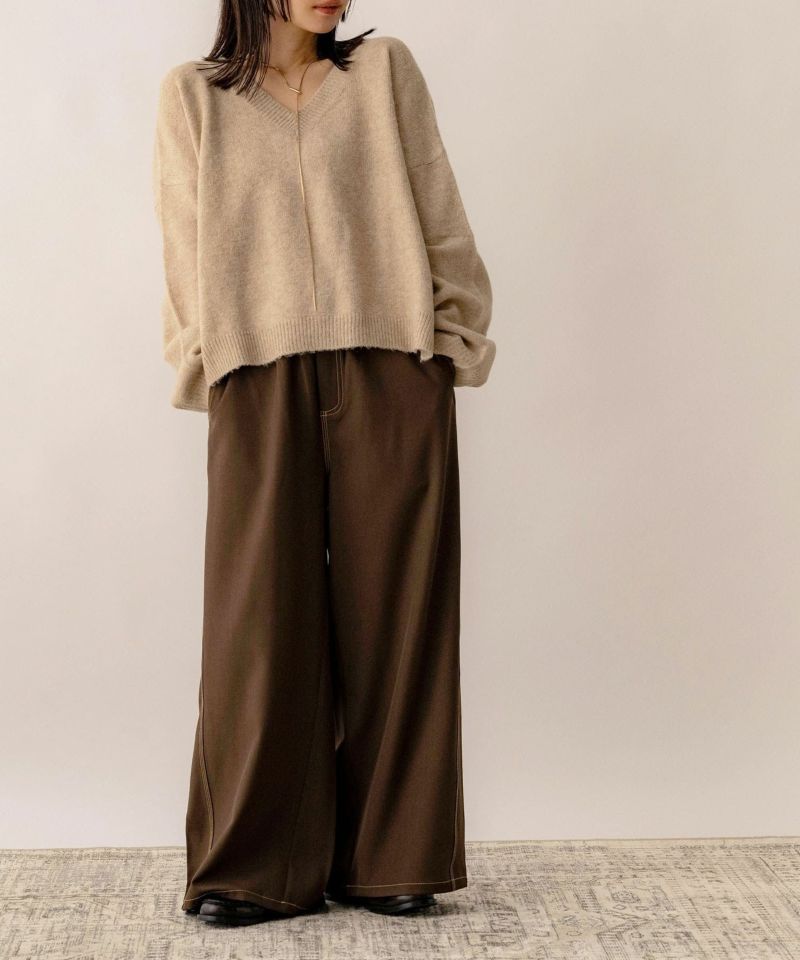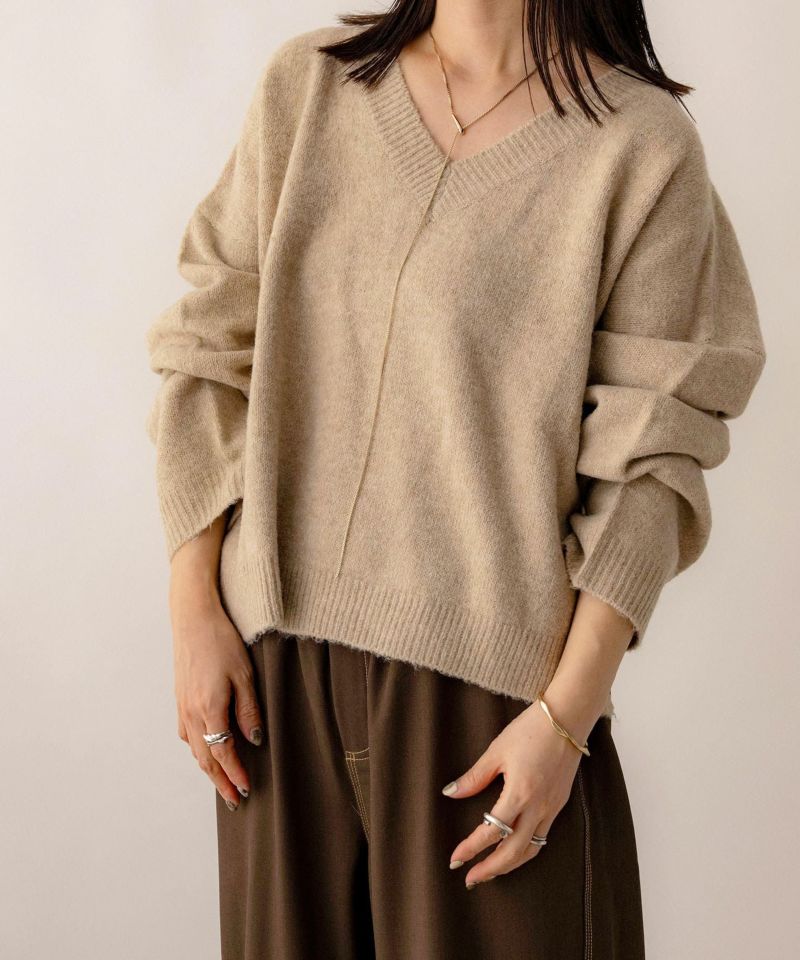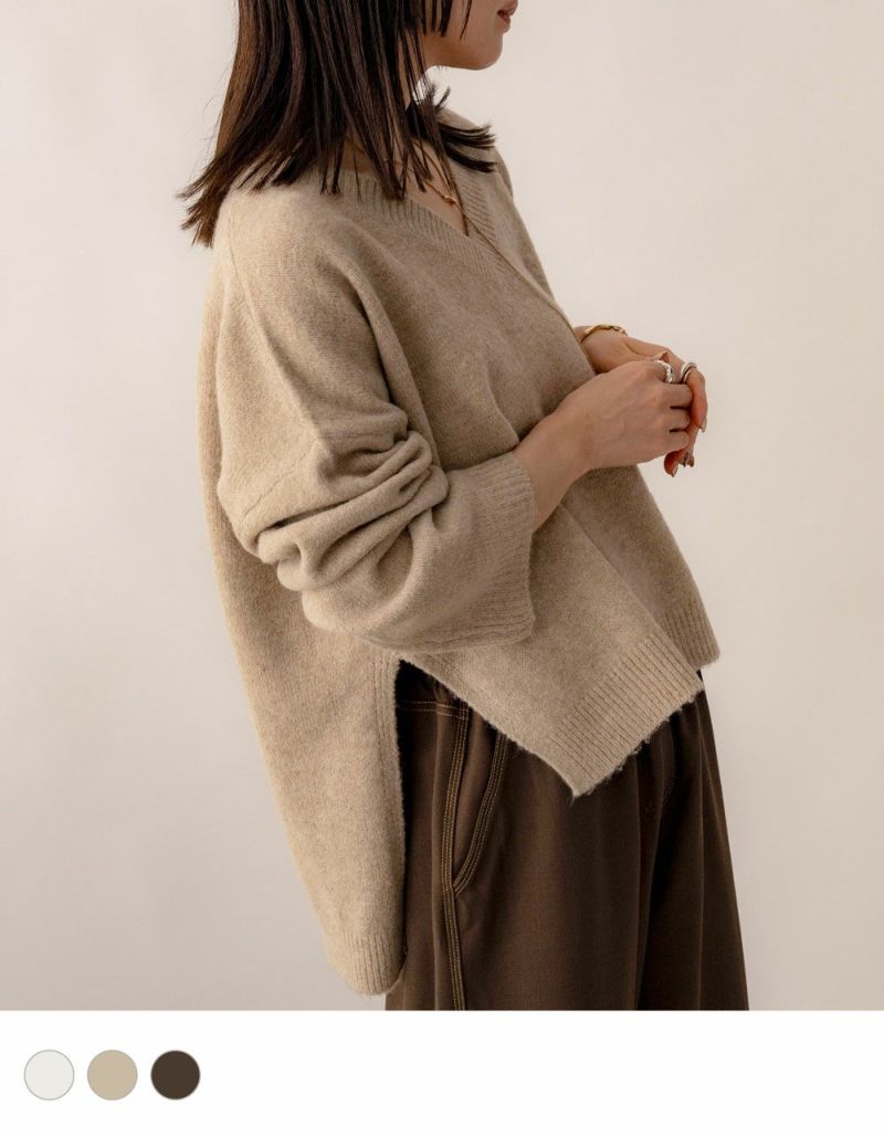 Vネックスリット入りニット