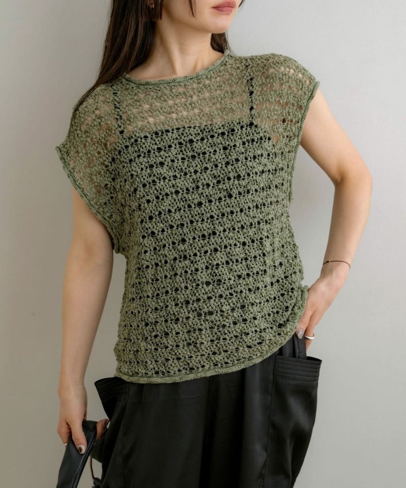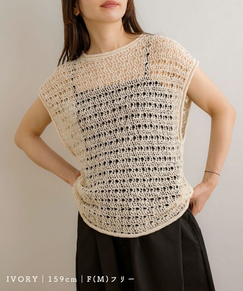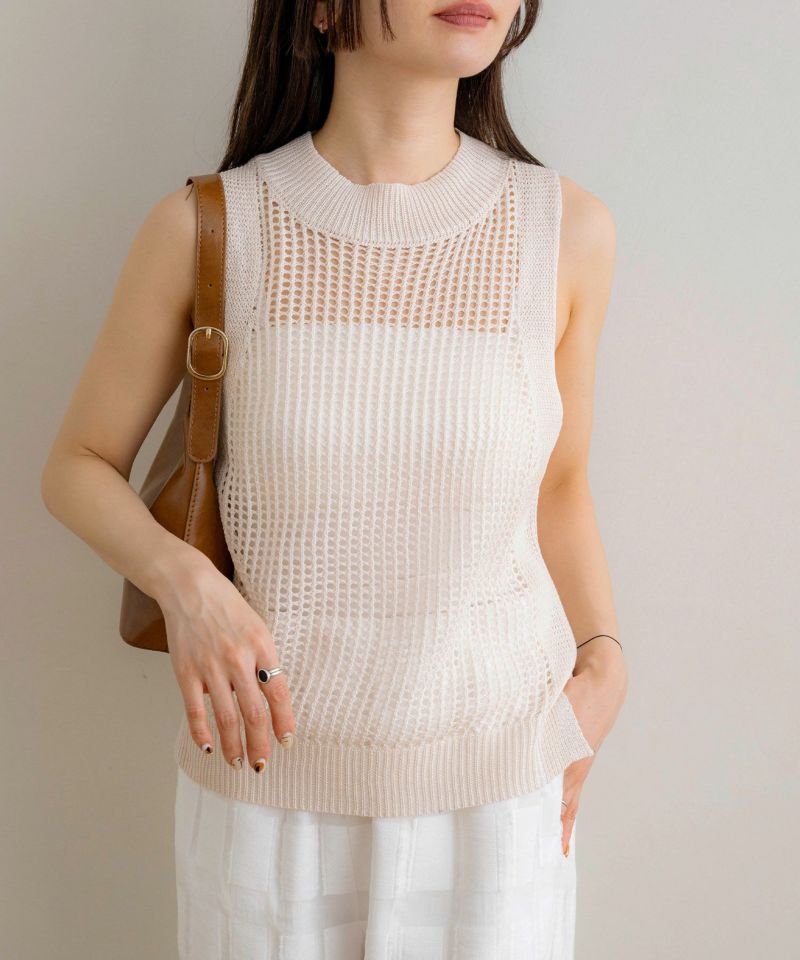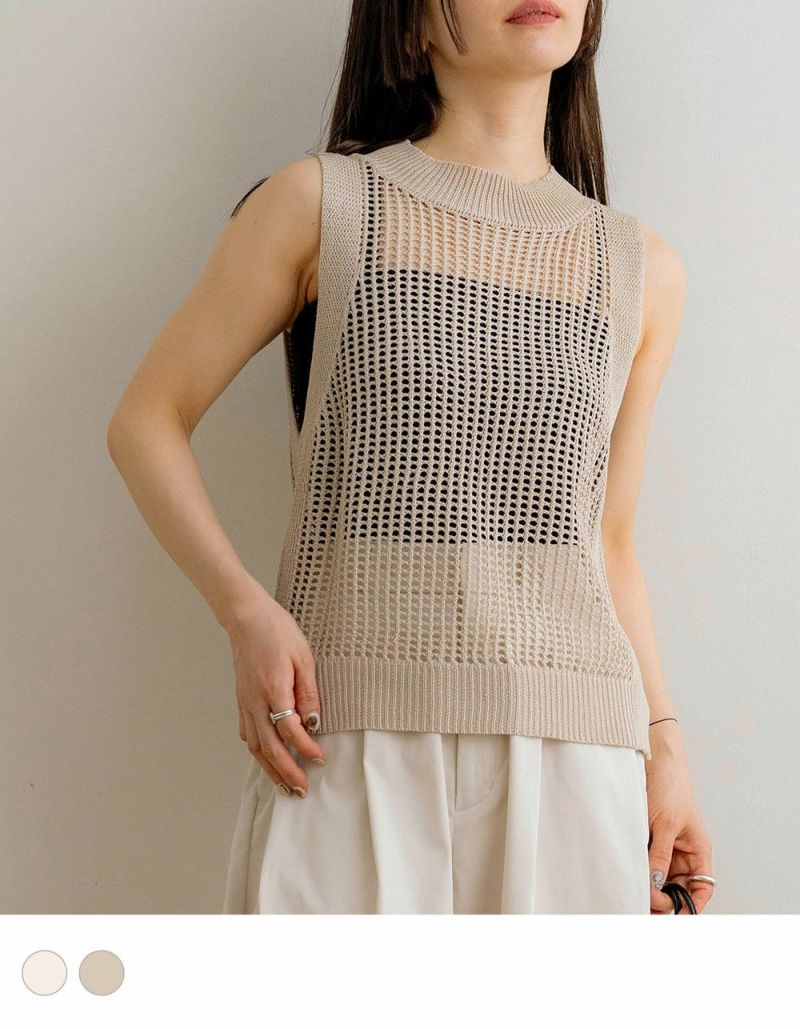 メッシュニットノースリーブトップス
