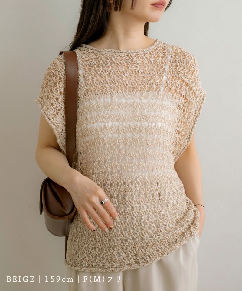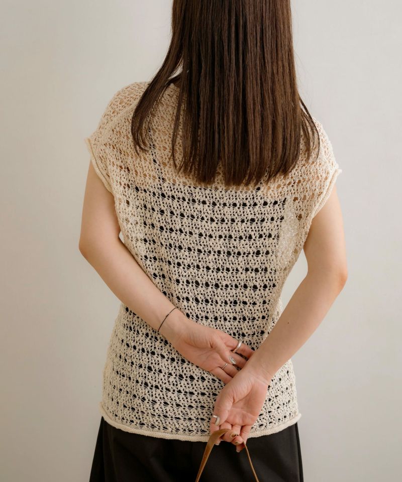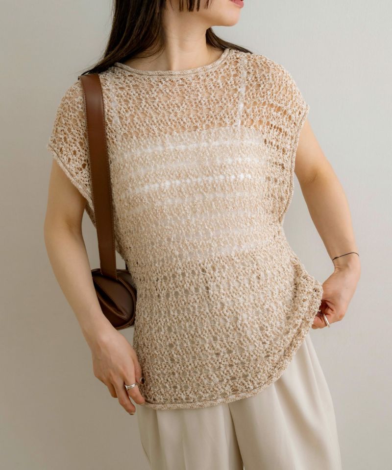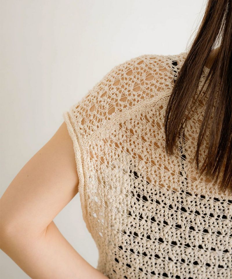 メッシュニットノースリーブトップス