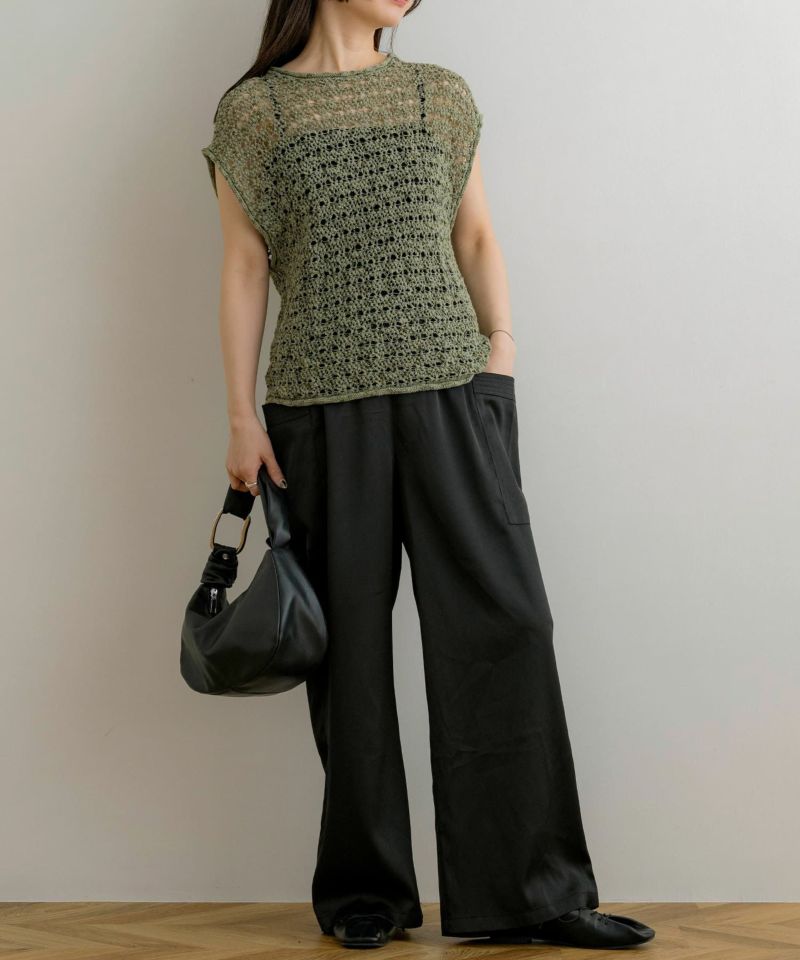 ブロックシアーワイドパンツ